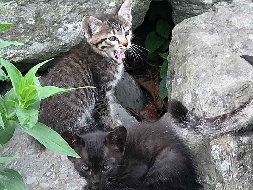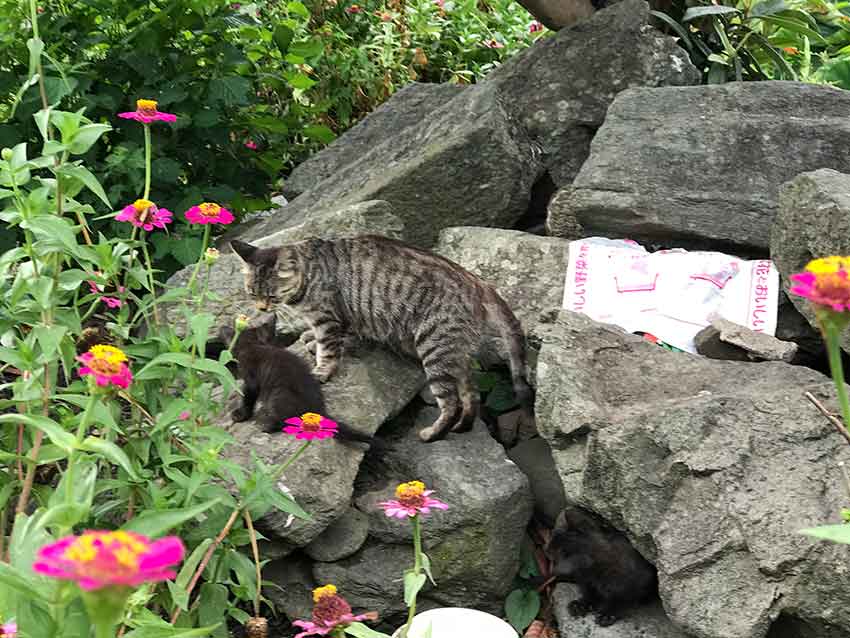 敷地の一角、古い家の時の庭石を積み上げた場所が、子ニャンコ達の住み家です♪