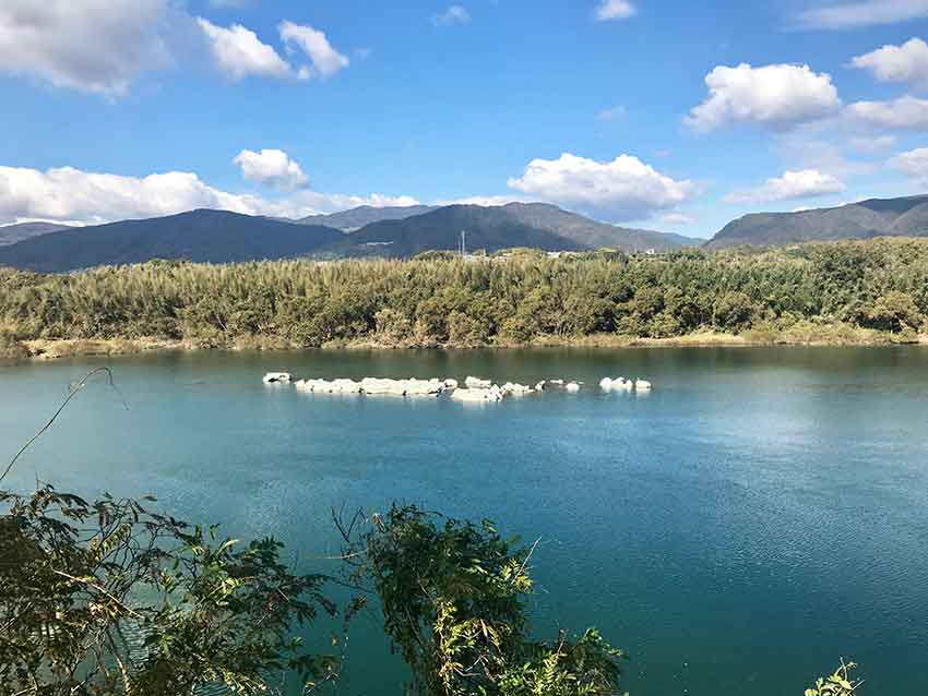 アメリカンステーションの駐車場から見る吉野川の「岩津の淵」♪