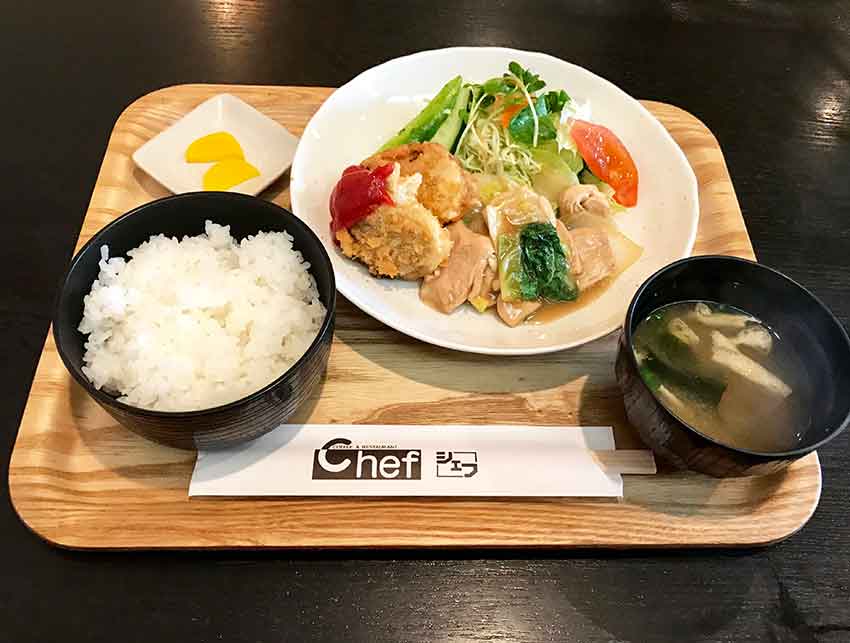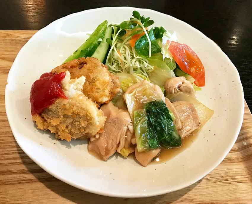 「日替わりランチ」は「レンコンと挽肉の挟み揚げ」と「豚肉と白菜の中華」でしたヽ(^o^)丿