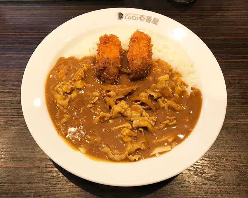 「豚しゃぶカレー」に「カキフライ」二個のトッピングですヽ(^o^)丿