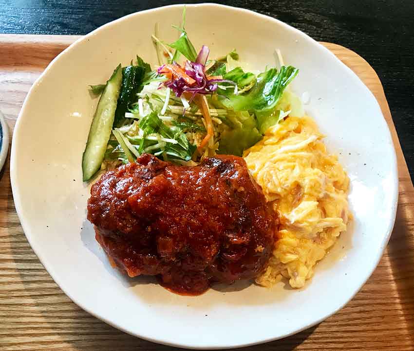 「日替わりランチ」は、「ミートボールのトマト煮込み」と「ツナ入りスクランブルエッグ」でした!!