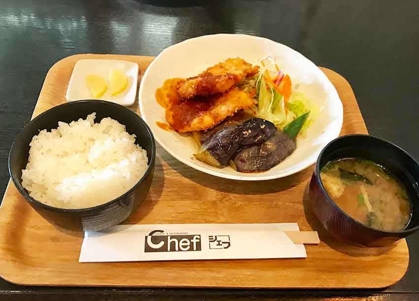 「日替わりランチ」は「チキンカツ」と「ナスの揚げ煮」でした!!