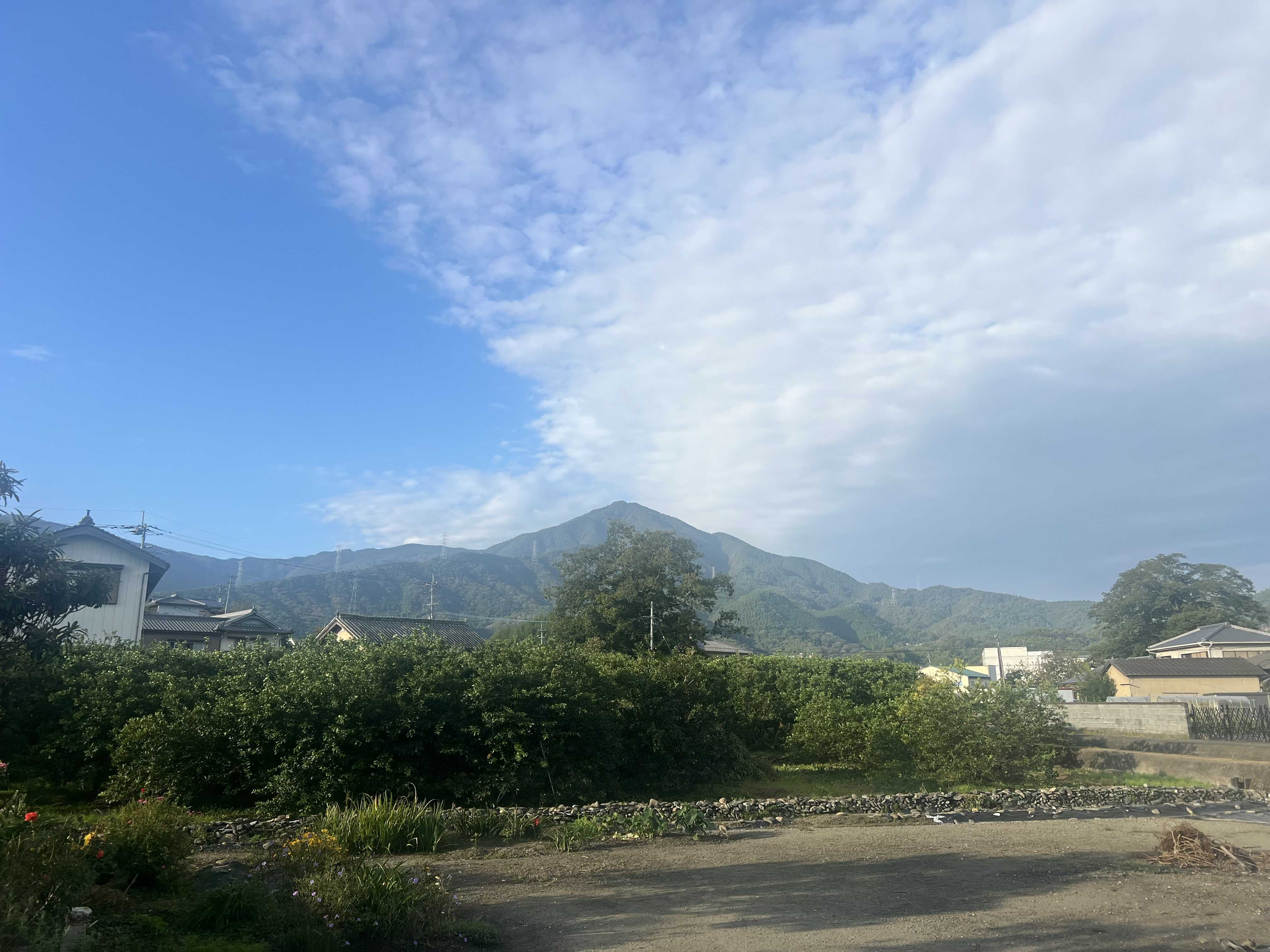 雲の多い朝でした。会社の隣りのセブンイレブンで昼食を購入します。「じっくり煮込んだポークカレー」です。美味しいカレーでした。568kcal、498円(税込537.84円)。朝夕は涼しいのですが、日中は暑いです。高越山と種穂山。種穂山てす。午後6時、我が家の庭から。