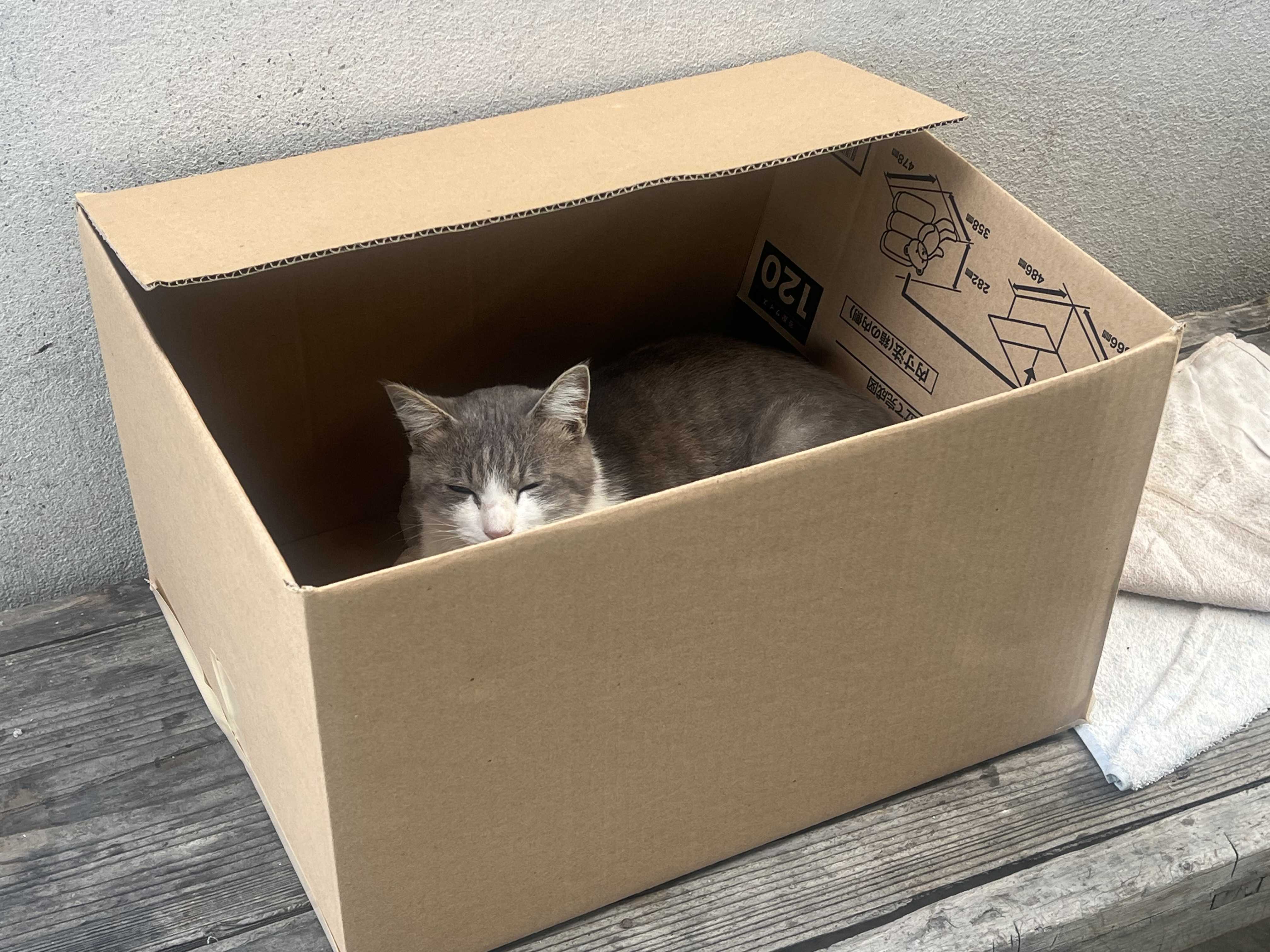 7昨夜は午後9時22分に能登から帰宅しました。野良ニャンコ、ダンボールを用意してもらっていました。なかなか居心地良さそうです♪天気は回復しています。午前10時に買い物に出ましたが、それ以外はパワーポイントの作成をしていました‼︎7日に講演を依頼されています。11月3日の中日新聞に、日本麻フェスティバルが掲載されていました♪