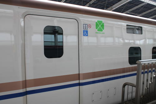 11号車はグリーン車です。こちらも中が見えました。青色の座席なのですね。E6系のグリーン車と近い??