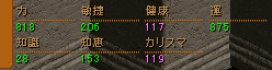 暇すぎて何をしようかと思っています。フォーリンも人多すぎて狩場ないし、翼を拾いに行くにも、こちらも人いっぱいやし。何をしようかな~と思っていましたら、意味もなくステ晒しします。これが現在、色々の補正込みのステです。まず、力は800まで振ろうと思っていたので、補正ありで800まで。次に敏捷、鉄クロGDXが装備できる204まで。知恵、これはとても後悔しています。Lv上げ目的じゃなく、あくまでもドロップ目的だったんで、60で止めるべきでした。次に、健康、カリスマ。こちらは固定です。次に運。これは比率物をつけた数値です。普段は頭だけ比率装備にしています。靴も買おうと思ったけど、金たりなかったんでwこのステで狩りできるかというと、こちらは場所にもよります。フォーリン地下では、大将系、シーフ、ゴーストみたいなのは狩れません。ゾンビみたいなのは狩れます。あと適正の場所というと、スフェブタワー19~20F。こちらは、クリムソン装備すると楽々狩りできます。吸収牙も装備しているので、青を少々使うだけ済みます。20Fもそろそろ飽きたんで、B1行こうと思ってたんですが、あそこはファミがいます。リザキリ?あいつは何の問題もないんですが、ファミが痛すぎます。正直、2、3発で逝けますね~。なので、この狩場は考えどころです。フォーリンに篭るしかないですね~。ZINなんでドロップもいいはずなんでwがしかし、人が多いwこればかりはどうしようもないです。時間みつけてこつこつ良品ゲットじゃーー!!