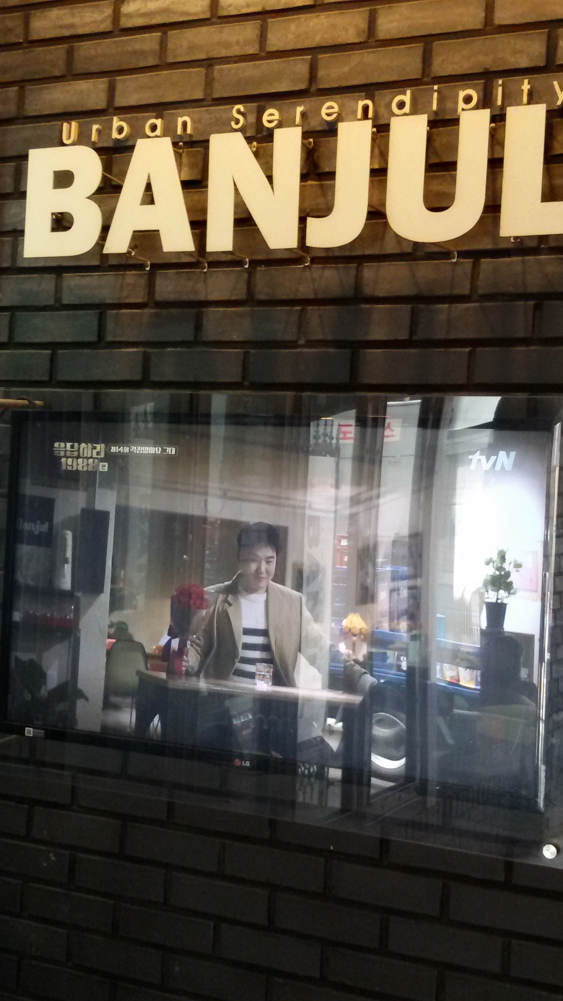 店の入り口にはそのシーンも流れてます