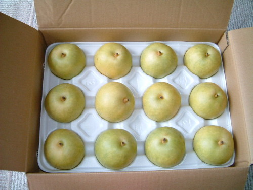 今年も届きました鳥取県の二十世紀梨です。贈り主は、2005年11月にスキルス胃癌で他界したカズオさん(40代)。もちろん、ご本人が贈れる筈はなくカズオさんの奥さんから。梨農家を営み、ご自分のことを 「梨バカ」 と表現するほど熱心に梨作りをしていた梨農家さんです。奥さんが、「私の気持ちです・・・というより、主人の気持ちです」 って言って今年もまた。。。そのカズオさんが、お気持ちだけで十分ですからと断る私に、 「ひろりんさんに食べて欲しいから贈るんです」 って病床で言った言葉を思い出し、また涙する私です。。。ところで、今日はあの尿管ステントの件でドタバタした、スキルス胃癌の患者さん(30代・女性)の近況です。(2012年8月23日の日記に書いてます)ほら、尿管ステントを4ヶ月交換してなくて、交換が必要だって事も知らされていなかった患者さんですよ。慌てて私、電話しちゃいました。これ緊急って判断です。この患者さん、1ヵ月前に手術は無事に終わってます。開いて見ると、結腸にも癌があって予定より大きな切除内容となりました。その分、術後の回復を心配しましたが、これが予想を反して早い回復でね。予定通り退院しました。あっ、正確には予定より数日延びました。退院予定日の前夜だったかな尿が出ない騒ぎになりましてね。米村先生、深夜1時に呼び出されたとか。医者って大変ですな。経過をみているうちに、問題解決となり予定より数日延びて退院しました。で、退院して自宅療養を開始して約2週間経つんですが、何かと心配するご主人からメールが何度か届いてます。 まだ少ししか食べれません、栄養の点滴した方が良いですかそりゃ、胃袋が丸ごとなくなったんだから、少ししか食べられないのは当たりでんがな。術後数週間じゃ、まだまだ無理ってもんです。少しずつ何度にも分けて食べて下さいまし。これも練習、リハビリでんがな。少しずつながらも、ちゃんと食べられているというので、食べられるなら栄養点滴は要らないと思うと返事。小腸も切除した場合はこの限りではないけれど、この患者さんの場合、小腸はそのままと聞いています。点滴すると、お腹が空かないって人が多いんですよね。お腹が空かないと、更に食事量が減ってしまうから、食べられるなら点滴なんかしない方が良いんです。そもそも、静脈から入れる点滴なら、チョコレートやレーズンが入った高カロリーのビスケット数枚程度のカロリーですもん。普通に食べた方が良くねで次のメール 下痢が続いているんですが・・・胃がなくなって、食べたものが直ぐ腸に行くんだから、腸が刺激されて下痢にもなりますがな。この患者さんの場合、腸も切除しているから、本来の水分吸収率も下がっている訳で、その分、下痢にもなる。最低でも、下痢は数ヶ月は続くのが普通です。まだ術後、数週間なんだから、しゃ~ないってとこです。いくら何でも、焦り過ぎてまっせ~このご主人、かなりの心配症ですまっ、仕方ないですけどね。やれやれ・・・ってトコで落ち着いたんですが、またちょっと経ってから質問メール。はい、続きは次回に。