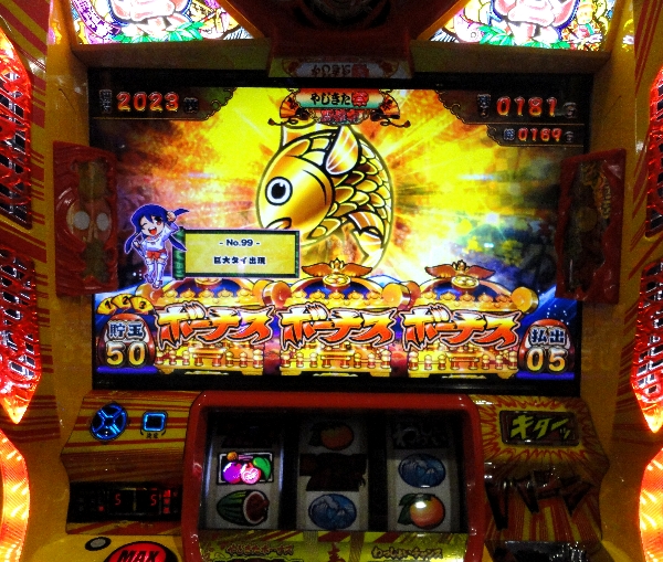 やじきた道中記乙画像集 ここは、やじきた道中記乙の画像を集めたページです。オリジナルの素材で、遊び心溢れる演出の数々と作りこまれたゲーム性に最大級の賛辞を送りたいと思い、このページを作りました。 ●中段チェリー&特殊役出現時演出など 関所チャレンジ中確定役やじきた祭中やじきたボーナス中超やじきたボーナス中●出目矛盾伊勢えび●飛ぶよ!