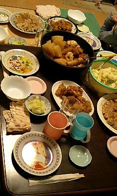 今日は、昨年の発表会でゲストに来てくれた方をお招きして打ち上げ&新年会となりました。ダンナのお友達であるわけですが、これがかなりご立派な体格なので(^_^;)どれだけの量を用意すればいいのやら・・・と、数日前からダンナと打ち合わせ。料理好きのダンナとしては、自分の得意料理を披露したいらしい・・・。ダンナ「から揚げは作ろうと思うんだ。あとは何にしよう」 私 「寒いからさぁ、鍋とかにしたいけど、もう1人は遠慮タイプの方だから 手を出しにくいと思うんだよねぇ~」そう。お二人呼ぶわけですが、1人は100Kg越。1人はヒョロっとしたイケメン君。このイケメン君の方が、手を出しにくい環境と言うのは可哀想だし。。。結局、から揚げ、餃子、おでん、ポテトサラダ、チャーハンということになって。我が家の3日分の晩ご飯献立を用意することになりました。ダンナが自分の料理を仕込み中は、私が家の掃除。午後、ゲストとちょっと遊んでから宴会に、というのでその間に残りの料理、餃子を包む作業などなど。。。なかなかウチに手料理を振舞ってお客さんを呼ぶなんてことがないのでてんやわんやの支度でしたが、お酒が入っちゃえば一緒!ということで、子供達も混ざって、楽しい宴会となりました。鍵盤楽器しか知らない私にとって、管楽器の話はいつも新鮮です。お兄ちゃんも、今はトロンボーン吹きだし、ピアニストとしてゲストに来てくれたイケメン君も、過去にホルン吹きだったというので、盛り上がりました。発表会のゲストは、だいたい2年続けてお招きしていることが恒例化しつつあるので・・・。来年も宜しくお願いしまっす
