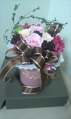 今年最初のレッスンは、可愛いパフェ容器の作品となりました。色合いがとってもプリティ~~専用ケースも付いているので、このままプレゼントできます。・・・だいぶ作品も溜まってきたし、置く場所も大変になってきたし。人にプレゼント出来るレベルにもなってきたので・・・これは、Jazzレッスン師匠の所に持っていくことにします。えへへ。。。。そういえば、先月のプリレッスンの写真をUpしていなかった。。。12月のプリは、毎年恒例「お正月」がテーマの和物でした。今回は水引もいい具合に納まってくれて。これまた、義母のところへプレゼントしちゃいました。来年は、実母のところへ行くかな??いよいよレッスンも丸2年。2月で3年目を迎えるに当たって一つ上のクラスに進級することにしました。そして、資格試験も受けることに!よし。頑張るぞ!