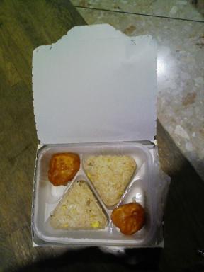 冬コミ無事に終了しましたが、足が痛いので、自販機で弁当買って一休み。