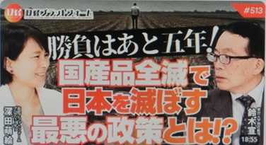 昨日の「政経プラットフォーム」深田:何ですか?要するにもう深田:そうですよね。今の政策を変えないと、アメリカのコメがどんどん入ってきて、日本のコメは食べれなくなるかも…「『胃袋からの属国化』で、 日本を支配し続ける!」戦後の占領政策が今も続いてる…それをやり過ぎて、今の米騒動になってしまった…これはある意味『食料による敗戦』深田萌絵さんは、「国産品を食べれなくなるのでは?」との懸念を持ち、すぐに行動し、将来に備えてます。鈴木先生から、国産品が追い込まれてる現状を聞き、「何か自分にできることはないか?」しっかり考えてみましょう。