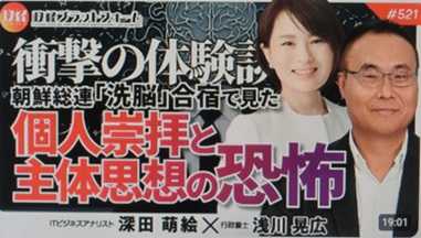 昨日の「政経プラットフォーム」大阪に朝鮮総連の研修施設があって、そこに2年生の時に1か月ぐらいの合宿があり、深田:そこで実際、いました、いました。その時の自分を、ほめてあげたい。「よくぞ、その洗脳に耐えた」ということを。元々在日韓国人で、日本で生まれ、日本語しか話せない浅川晃広先生。日本にいるときは深く考えたことがなかったが、オーストラリアに留学することになり、その時初めて自分の置かれた立場の不自然さに気が付き、現在は日本人に帰化されています。そして若い時に経験した「洗脳合宿」で、なぜ洗脳されなかったのか?そこには先生の考え方が、大きく影響していました。「1人に人間としての、 人生の正しい生き方」それを聞ける動画でもあります。ぜひ動画を見てくださいね~