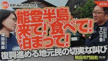 昨日の「政経プラットフォーム」能登半島訪問ということを、おっしゃってました。ふとした時に、「ぐっとくる」というのが、今こうを求めていて、全然こっちは「来てください!」なんですよ。「みんな来てください」能登半島の地震から約2年になります。報道があまりないので、能登半島の復興、終わってると思ってませんか?今回能登半島を訪問した深田萌絵さんが、「能登のリアル」を伝えてます。ぜひ動画を見てくださいね~