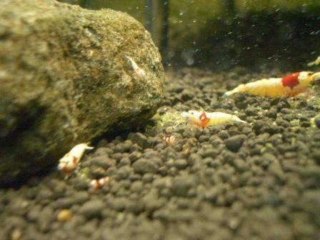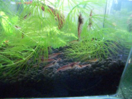 おはようございます。昨日は、32℃の中、大雨の後片付けを・・・さすがに厳しかったですねぇ~ヘロヘロでした。今日は、全身が痛いですw。今日は、車で30分ぐらいの所にある私の実家と、嫁の実家の方の、墓参りに行って来ます。どちらも、同じ町にあるのですが、それぞれへの移動に車で15分ぐらいかかりますw。今日も暑いですから、厳しい1日になりそうですねw。昨日は、A-2のエサ日・・・。エビサプリをあげると、稚エビも寄って来るようになりました!ありゃ?ピンボケだ・・・コレしか撮っていないので、ご容赦下さい。稚エビが見えますよね?w。実は、昨日も疲れで何もしていないのですよw。本当は、土曜日は、水換えの日なんですが、準備をしていません。今日、これから水を準備して、明日水換えですね。そんなこんなで、エビ情報もここまでw。明日からは普通に戻れるかなぁ・・・。それにしても、体が・・・(苦笑)