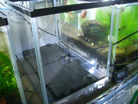 おはようございます。最近は、日が短くなって来ました。仕事から帰るときにはもう、暗くなっています。こうなると、寂しいですよねぇ~・・・(笑)この時期は、昨日も書きましたが、毎年テンションが下がってダメです。かるい季節うつです(苦笑)昨日、突如思い立ち、B-3を立上げました!まだ、A系ともB系とも繋いでいないですが、最終的にはB系に繋ぐ予定です。で、作ってあった、Sunny式OF水槽をセットして、予定通り、富士砂を・・・かなり前に、洗ってありましたので、それをザザッとw。水草再生計画で使っていた小型水槽を撤去しないと、セットできなかったので、撤去!水を張って、撤去した水槽の、再生中の水草をドボン!自作クーラー用に買ってあった、水中ポンプで、水を循環・・・おー、役に立ったなw。パイロットは・・・ラムズが不足していますし、困りましたねw。とりあえず、飼育水を少しづつ投入する作戦で行きたいと思います。さて、後は少々待つだけですねw。入れるエビは居ないので、赤ミナミ専用水槽か、何か調達するか・・・。ちょっと(ムリに)楽しく悩みますねぇ~(笑)