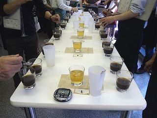 一日雨模様だった昨日、取引先で開催のパナマ・エスメラルダ農園のコーヒーカッピングへ行ってきました。インターネットオークションに出品するコーヒー、毎年高額で落札される人気のゲイシャ種のカッピングです。昨年ブログはこちら エスメラルダ農園のゲイシャ種(コーヒー木の品種)は大粒で香りが高く、開催オークションの中でも1~2位を争う人気のコーヒーです。昨年に比べ円安の為、同レベルであっても最低1,000円/kgは買付け価格が上昇すると思います。全部で9ロットの香り、コク、風味、酸味、苦味、口当たり等味の確認をして来ました。 バックNo.347:珈琲場面オンとオフ(↓スクロールしてネ) ◆Twitterこちら!SUNNY金曜日限定セール@sunny_friday_ ■サニーフーヅオンラインショッピング■ ●コーヒー豆 ●サワー濃縮果汁 ●フルーツ&フレーバーシロップ 人気blogランキングに参加中応援いつも感謝です^^♪