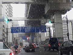 今朝東京は、朝から雪が降りだしました。8時頃の国道246号、池尻大橋付近です。