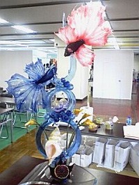 夏のイメージを感じさせる素晴らしい作品です。写真では分かりにくいですが魚の目も生き生きとしています。こうなるとお菓子というより、まさにアートですね。