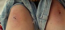昼過ぎに、子がわんこの散歩にいきたいということで、公園へいくことに。河川敷をさんぽしながら、子が前にお友達とあそんだ滑り台風の傾斜(たぶん川に流れ込む水路の鉄板の蓋??)をみつけ、「ママ~滑り台やるぅー!」と言い出した。ワンコはしょうがないのでリードをつけたままで話してやると、ちょこちょこ近場を徘徊。子はキャーキャーいいながら楽しんでいた。公園へいこうと歩いていると、今度は前回よりも傾斜も長さもある、幅の狭い鉄板発見!!私はなにを血迷ったのか、子に「ままといっしょにシューってやろー。」といいながら、いやがる子を抱っこしたまま滑ってみた。かなーりスピードが・・・。無事についたと子をおろそうとしたが、スニーカーの厚底が妙なクッションとなり、バウンドして両膝が地面に大ヒット!!子は守って無事だったが、恥ずかしいし痛い・・・。子「ママだいじょーぶ?病院いく?」ママ「いたいよぉ」普通逆だよね・・・しかも人目のなさそうなところのベンチに座ってジーンズをひざまでまくってみると、すりむいてるわ出血してるわで、もうぐったり。子のオシリナップしかなかった私は、それでふいて、いたいよぉーなんて両膝を手でパタパタしてたら、カップルが変な顔してみていくし、ワンコまで心配顔。子は「病院いこう!いたいのいたいのとんでけーしてあげる、ふきふき」と患部をギュッとふいてくれた。痛がりなのにこんな状態なのにパパに写メだーとおもいパチリ。パパはすぐTELしてきて「○○ちゃんが転んだの??平気??」っておいおい。こんなぶっとい足の2歳児いないだろ!とか切れ気味で「わたしですけど・・・」するとパパは「おいおいきをつけろよなー。子供が真似するだろ。」だって。笑いをこらえてたよ腰までなんだか痛くなってきたので、公園はあきらめてくれる?とためしに聞いたら泣かれた・・。そこからまた1時間遊び、徒歩で帰宅。消毒して絆創膏をはろうとしたらまた絶叫。子はヒエピタとか絆創膏とか皮膚にはるものすべてに嫌悪感まるだし。以前に転んで木箱の角に顔をぶつけたときに貼ったガーゼのトラウマなんだろうか??今日のお風呂はしみるの我慢で気合で入りました。転んだのなんて何年ぶり??っていうか十ん年ぶりだよまったくぅ。