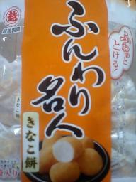 昨夜パパが夜中に突然「なんか食べたくない??煎餅とか・・・」といいだした。私は小腹もすいてたのでコンビニまでお買い物にいってもらった。そしてかってきたのがこれ!「ふんわり名人」パパがおいしい!!!っておおさわぎしてたけど、えーきな粉ぉ~??っておもってたからたべなかったんだけど、ここはまたしても進め上手なパパさん「だまされたと思ってたべてみー」的発言で一口。これがネーミングのとおり、すっごいふんわりなんて表現したらいいのか・・・。ぱふっ!てなかんじです。でも子にはあんまり・・・だったらしいですが。