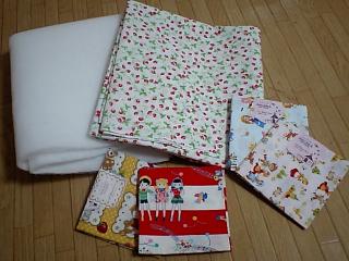 今日マツケさんで半額の生地を即買い!!だってだって前からねらっていたんだもん~。ダブルガーゼは薄地で扱いやすいしこれから春にむけて(気が早いかぁ・・)子とおそろいのティアードスカートをつくろうかなぁってかんがえてます。レースをふんだんにつかってラブリー系のチュニックでもいいし、何しろ半額って言葉につられて3mも購入しちゃったからね。このショップは確認メールも早ければ発送もめちゃはやい!もう明日到着かも?これは早速トーションレースを買わなきゃ!でももう子はお昼ねしちゃったし、寒いし・・っておもってまたまた「手芸 ナカムラ」さんをチェック。そしたらなんとお正月特価でバイアステープ3種盛り~が100円!!赤と紺?があって、チェックと無地とレースの3種入り。これはかうしかない!これをつかって夏場の子のワンピを作ろうとか、本当気が早い私でした。