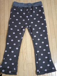 これはママセットにはいっていた生地でつくった子のレギンス。ママ用に一着つくりましたがあまってしまって子の帽子をつくったのですがまだまだあまってる。で、最近めっきり寒くなり、成長して服がまにあわない子のために夜中に作成。この生地かなりかわいいのでリクエストして入れてもらったお品です。ウエストは黒杢リブで、50cm100円だった。あまりにやすいので大量買いしていろんなところに使用中。