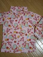 急にでかくなった子のためにパジャマを裏起毛のフリースでつくりました。でも本当適当だったので、袖が細い!!しょうがないからマツケさんで購入のめちゃ安ドット生地も使って縫い縫い。このドットの生地、びっくりするほどのびのびー・・・。で、思ったのが、ウエストにゴムいれるのめんどうだからこれつかっちゃえ!出来たものがこれ上は袖をゆったりとさせました。パパは「おそろいだなぁーおやじカラーで。」なんていってたけど、本当おやじみたいだ。でも子はこれがあったかいらしく、毎日のように着たがります。ママはちょっと恥ずかしい・・・。