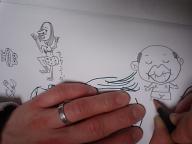 お絵かき中のパパを昨夜ぱちり。なんでこんな絵ばかり?これが今日も私のお気に入り。未知との遭遇系です。名前は「イシシ花山さん」真ん中は我が家のワンコのイメージ。 「むさせぶん」最後は「たさぎ」だそうです。はー。これじゃ生地できないじゃん!とかいいながらも楽しみながらこんやも牛刀握ってる私でした。こんなかんじのデザインかわいいかも。昭和レトロだねー。ちょっとこういうのもかわいくって参考になっちゃう??こういう生地も昔っぽくってスキです。