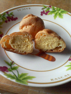 かぼちゃの花のプチシュークリームぺろり
