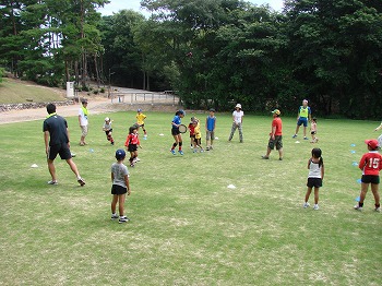 8月9日(土)ホンダアクティブランドで定期練習を行いました。今日は芝生広場で保護者・コーチと一緒にドッヂビー大会を行いました。ドッヂビーとは、ウレタン製でできた直径約25cmの円盤型のディスクを使用し、ドッヂボールと同じようなルールで試合を行います。小学生の間では人気スポーツのようです。コーチや保護者にとっては初めての体験でしたがとても楽しいレクリェーション大会となりました。暑い夏休みも半分が過ぎようとしていますが、みんな元気一杯に楽しんでいました。