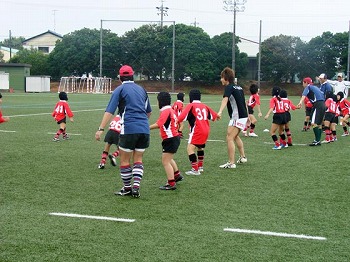 8月23日(土)ホンダアクティブランドで定期練習を行いました。昨夜から雨が降り続き、今朝も強い雨だったため幼稚園児の練習はお休みにしました。室内で準備体操をした後、グランド練習の時には小雨となり、9月に交流会や三重県ミニラグビー交流大会が予定されているため、小学生だけで試合に向けた練習や試合形式の練習を行いました。雨に濡れて少々肌寒い気温でしたので、早めに練習を終了しました。いよいよ次回の練習は久し振りの交流試合です。みんな楽しみにしていました。