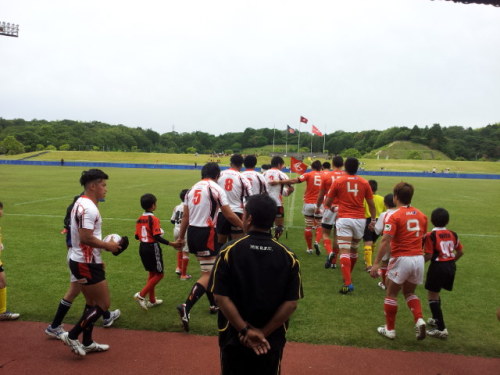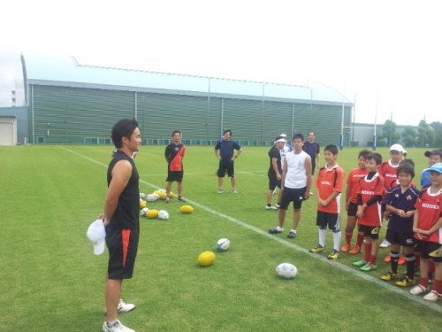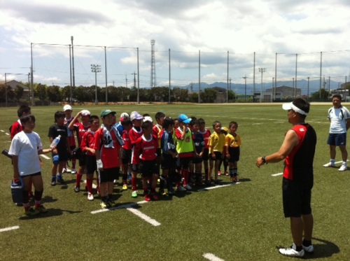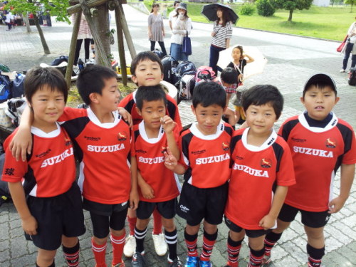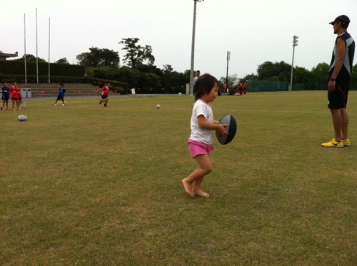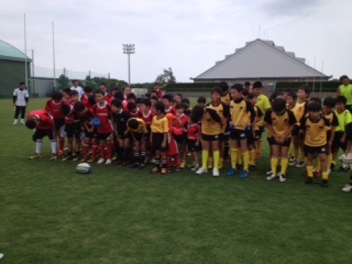 皆さんこんにちは本日の鈴鹿RSは三重県ラグビーフェスティバル2013での合同練習会に参加して来ました。朝8:30集合だったのに生徒達は朝から元気!んっ? 真ん中の生徒がなんかもってますね?これはでっぷり肥った『アマガエル』でした。この後、小杉小織コーチがカエル嫌いである事が判明!当然のように生徒達に追っかけまわされてました(笑)けしかけたのは私です…(小杉コーチごめんなさい)AM9:00から練習スタート今回は鈴鹿RSの他、四日市Jrさん、津・高虎RSさん、桑名RSさんの4チームが参加しました。まずはCグレードから続いてBグレード引き続きAグレードランパスでミスしたら全員で罰ゲーム過酷な自衛隊前進!その後HEAT選手と一緒にラグビー体験に参加最後は参加RS全員とHEAT選手一緒に記念撮影皆いい経験が出来たね!この様な貴重な経験が出来た事を感謝致します。主催頂いた三重県ラグビーフットボール協会様、Honda HEAT様参加された各ラグビースクールの皆様ありがとうございました。