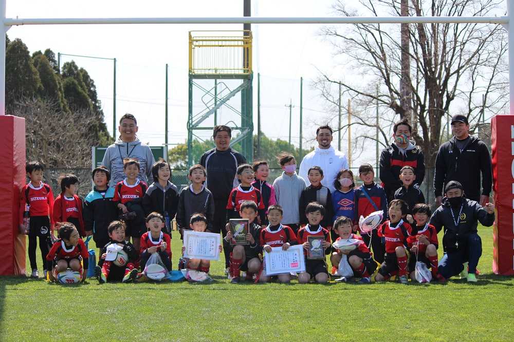 3月20日2020年度 三重県中学生新人大会中学生にも活躍の場をと新設された本大会。コロナの影響で二か月遅れの開催となりましたが、無事に年度内に開催となりました。開催にあたりご尽力頂きました三重県ラグビー協会の皆さま、対戦頂きました各スクール、そして中学校の皆さま、一日ありがとうございました<(_ _)>参加チーム木本中学校さん、熊野RSさん、桑名Jr.さん、四日市Jr.さん、津高虎RSさん、鈴鹿RS結果は…全勝優勝(#^^#)一年生も全員試合に出場して、試合を経験しながらの優勝に価値がある(^^)2年ぶりに身にまとったSUZUKAのジャージ姿が眩しいですね(^^;PhotoはKsdコーチ ^^) ありがとうございました!子供たちの魂のこもった試合の模様。KsDコーチの魂がこもったPhoto。ご覧ください。2年生NgMはガールズラグビー合宿参加で早退の為、大会後集合Photoには写ってません(;_;)男子の中に混ざって勝利への大きな貢献ありがとね。