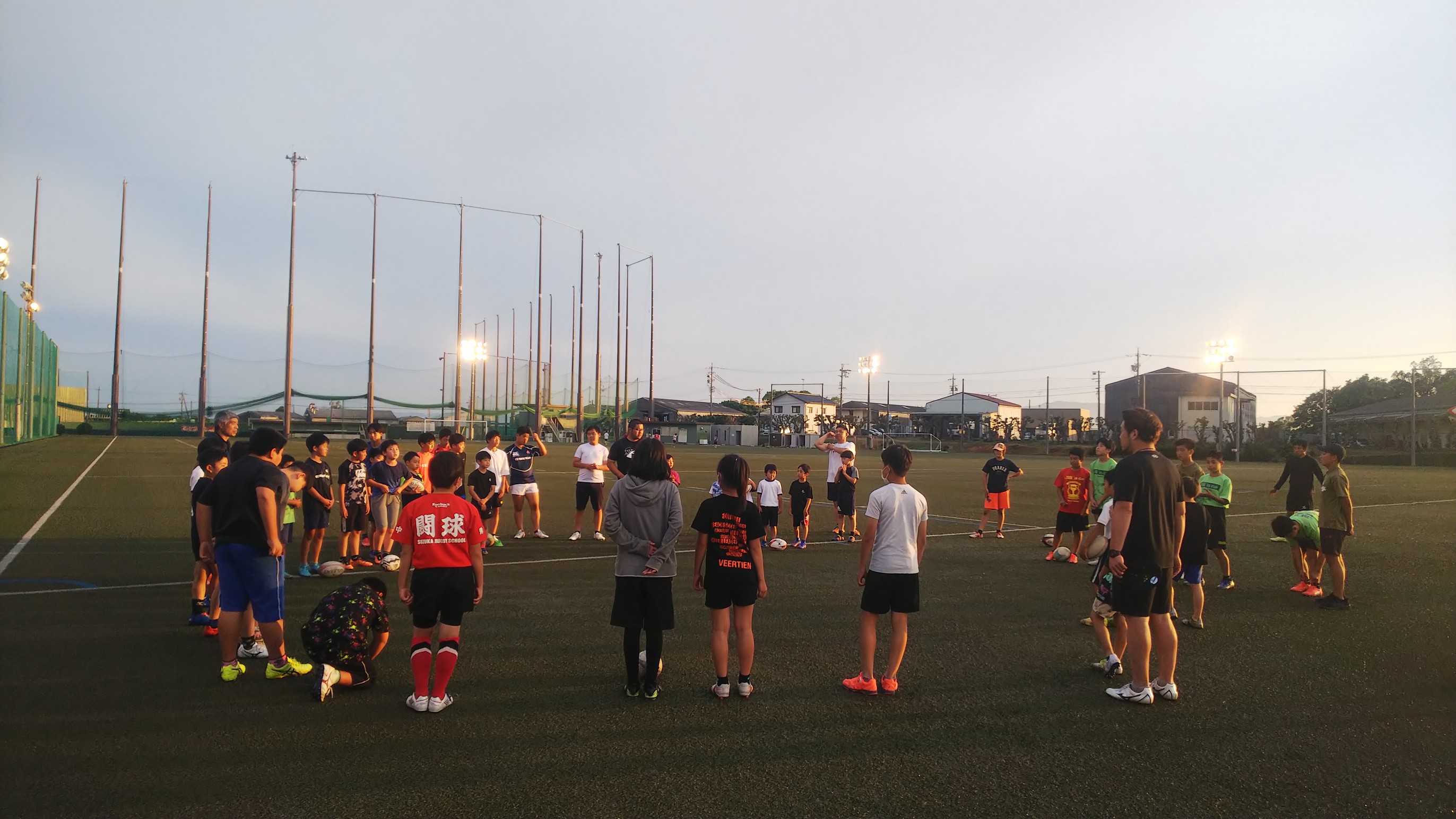 6月19日中学生が大会を戦ってる同時刻。Hondaアクティブランドでは幼児小学生の通常練習でした。わたくしもこの日の練習は見れていないので…NgTコーチが残してくれたPhotoでしっかり観察(^^)ではご一緒に(^^)v体験キッズが4名も来てくれました!いつものようにグラウンドへの感謝から練習スタート!高学年グレード!低学年グレード!中学年グレード!幼児グレードは…先週に引き続きHAL散策ですかね(^-^;HALは自然がいっぱいです(^^)低学年、中学年は将来に繋がるコーディネーショントレーニングを重ねる。ラグビーだけに捉われず様々な神経を刺激します!やさしく手取り足取り(^^)高学年の練習!幼児グレード散策だけじゃなく練習もしっかりしてます!暑いよね(^^;大事な姿勢!練習の後半は試合試合試合!諸事情で熊野カップに来れなかった中学年グレードキャプテンMyG…県内でベールを脱ぐのはもうちょい先か(^^ゞ白熱の模様がPhotoからも伝わります!この後どうなった?抜けたか?Photoに収まる6人。高学年の成長著しい6人。楽しみ。リーグワンプレーヤー顔負けのダブルタックル!いい汗(^^元気な低学年のキッズたち!コーチも一緒に観戦応援♪また元気な低学年!オフロードどうだった??目でしっかり味方をとらえてる。グッド!みんないい汗!一生懸命な姿がいい!タグラグビーでクラッシュ!大丈夫やったかな…ラガールたちも奮闘してます!ワンチーム!お付き合いありがとうございましたm(_ _)m子供たちの一生懸命な姿がいい。子供たちが一生懸命になれることがあること。大事ですね。