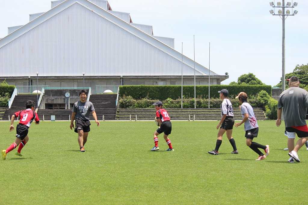 7月3日鈴鹿RS3拠点での活動続いて、中学2年生3年生の御所実業高校フェスタ。クリニックに交流試合に一日お世話になりました。御所実業高校さんOBも今までたくさんお世話になりました。そして、奈良の公立高校ながら全国屈指のラグビー名門校。そこにはたしかな文化があり、名門校ならではの匂いというか空気がある。鈴鹿RS中学生のみんなも、なにかを感じて帰ってくれたなら幸いです(^^一日お世話になった、鈴鹿OBで御所実3年生のStZ。わたくしは行けなかったので会えませんでしたが、コーチの皆さんから伺ったその献身的な姿勢に成長が伺えます。本当にありがとね(^^そして、御所実→帝京大学→HondaHEATの小西さん。直接指導に本当にお世話になりました。ありがとうございましたm(_ _)mでは、フェスタの模様です。PhotoはUrAコーチの携帯カメラ(^^;