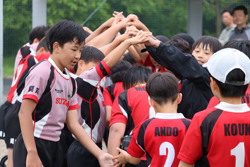 5月10日フレンドリーマッチ by Kids生憎の天気の中でしたが…今年も参加させて頂きました。イベント開催にご尽力頂きました、四日市Jrスタッフをはじめ関係者の皆さま、一日ありがとうございましたm(_ _)m試合前やハーフタイムも含めて、選手ゾーンへの大人の立ち入りと声掛け禁止。試合中の選手に対する大人からの声掛け禁止。グラウンドに響き渡るのは子供たちの声のみ。この世代に携わる大人が目指すべき姿。~~この日の一コマ子供たちが大人の誰に言われるまでもなく自ら行動に移した試合後のメンバーを迎えいれた花道自チームの仲間だけでなく他チームの選手たちも迎え入れ敵と言われる相手がいてライバルがいて競技は成り立ってますが。ラグビーを競技してるものはみんな仲間改めて子供たちに気付かされました (^^;いい光景でした試合後のPhotoこの日も涙あり喜びありの一日でしたではここからフレンドリーマッチ by Kids の模様です ♪鈴鹿RSは3チーム体制!