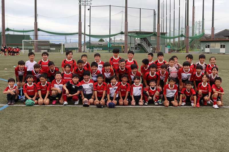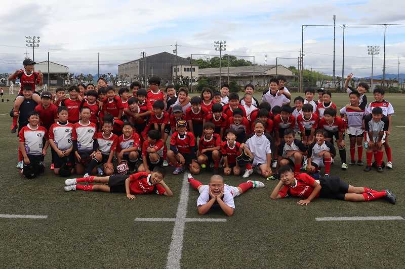 5月25日ラグビー三昧の一日。続いて高学年。高学年は関RSさんと豊橋RSさんに交流して頂きました。雨で実施がどうなるか分からない難しい状況の中でしたが…両チームさんとも遠方から駆け付けてくれました。関RSさんとは長く続くご縁。豊橋RSさんは人と人の繋がりから頂いたご縁。感謝です。両チーム関係者の皆さまありがとうございました <(_ _)>~~この日は一人のキッズの歓喜の初トライがありました。ラグビーは、少年をいちはやく大人にし…なんていいう言葉がありますが。数か月前に初めて鈴鹿RSに来た時のことを思えば、明らかに顔つきが変わって来たんじゃないかって感じます。態度や姿勢なんかも含めて。熱心に指導頂けるコーチ皆さんの貢献はもちろん。ラグビーというスポーツの不思議なところ (^^;みんなそうですが。これからの成長も楽しみにしてます。~~では3チームの交流会の模様です!最初のPhotoはもちろん。交流後の集合Photoから (^^;