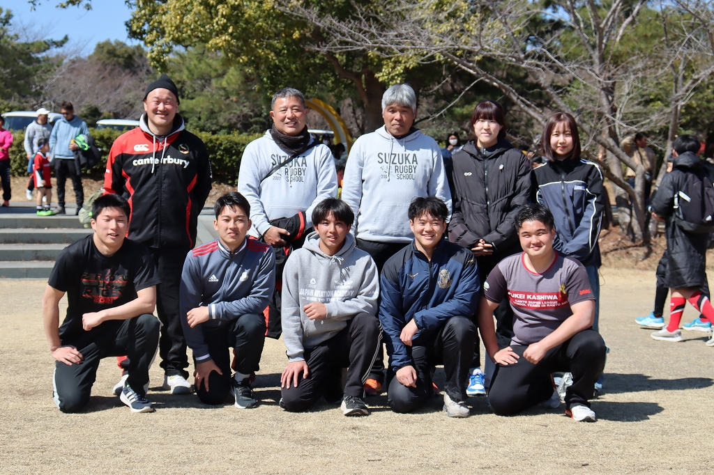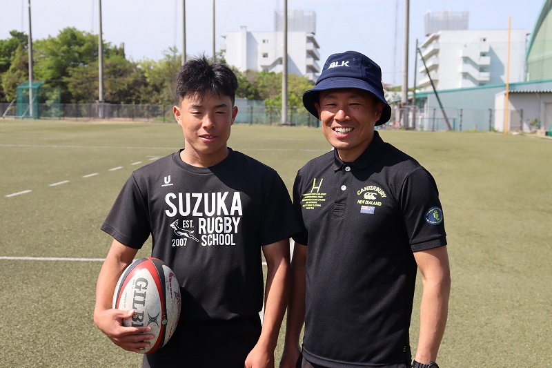 4月27日三重県中学生大会1stラウンド兼太陽生命カップ2025 第15回全国中学生ラグビーフットボール大会三重県予選結果はともかく、それぞれが成長した姿を見せてくれた大会でした。交流戦も含めて。目標があるから成長できる。達成には至りませんでしたが…確かな成長がそこにはありました。届かなかった分はまたここから。前を向いて頑張って行きましょう。U-13チームは1st全勝にて1位通過。この学年の3年間の戦いも始まります。~~4/27最後の掲載はU-13 7人制試合からU-15 交流戦までそして、冒頭のPhotoは…この日顔を出してくれたOB達 (^_^)はにかんだ笑顔で顔だしてくれたり挨拶に来てくれたりすると。元気で頑張ってるんだなって。励みになりますね (^^左:KdO (鈴鹿高専 1年)右:KkS (朝明高校 1年)左:AdR (四日市農芸高校 3年)右:OkK (朝明高校 3年)