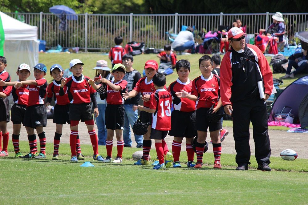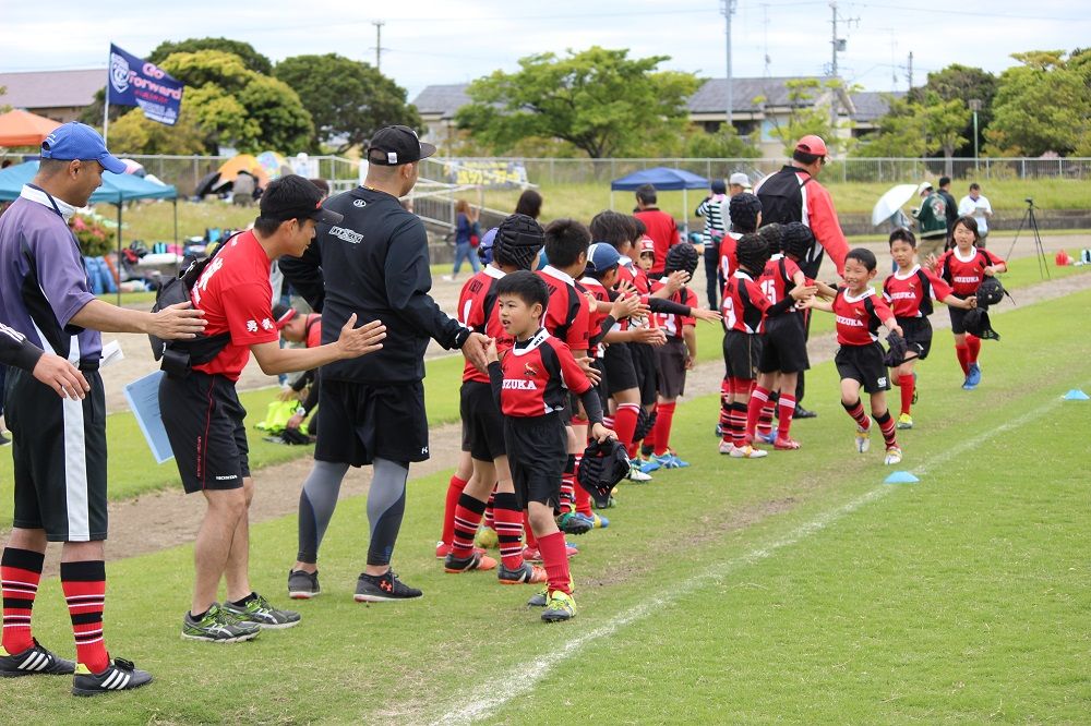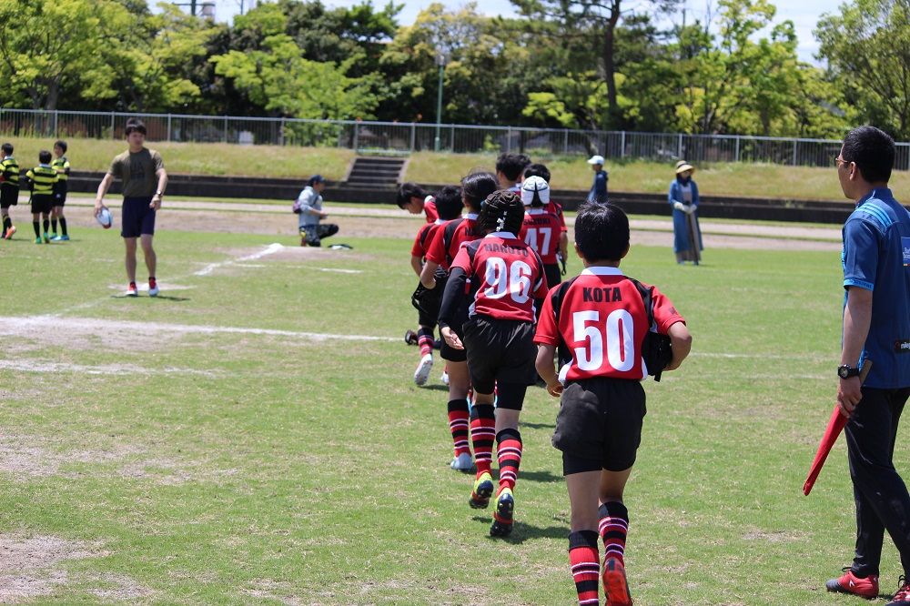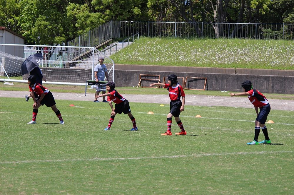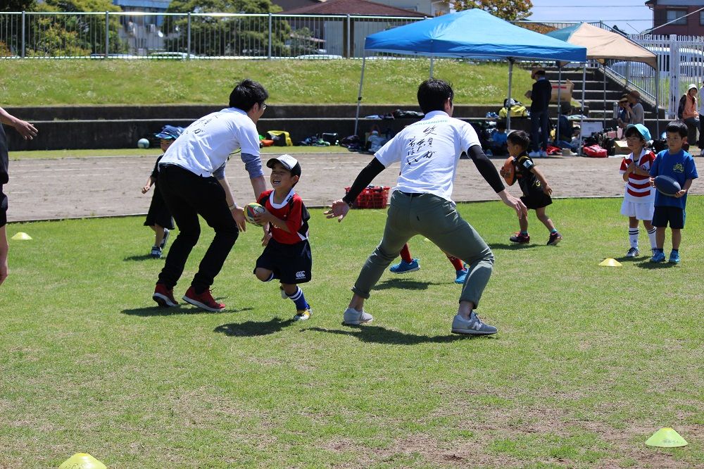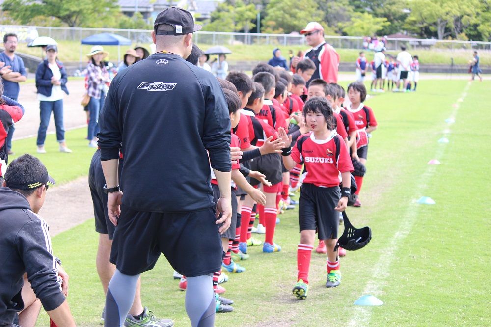 これもラグビーです。試合後のコーチとのハイタッチが印象的。