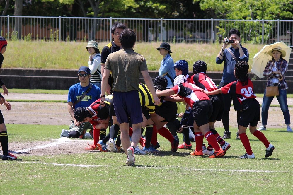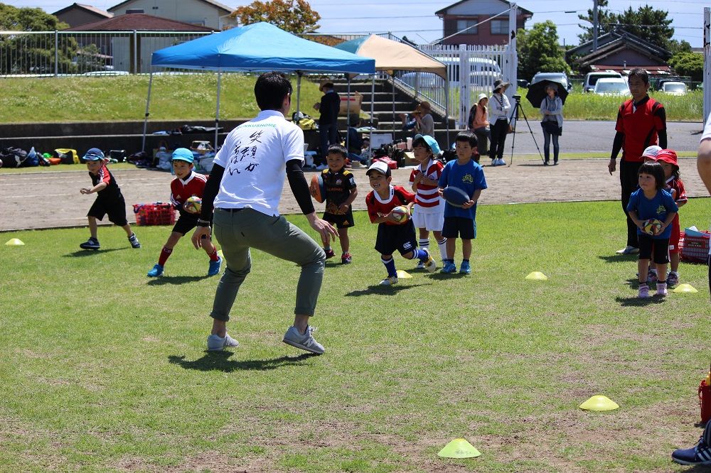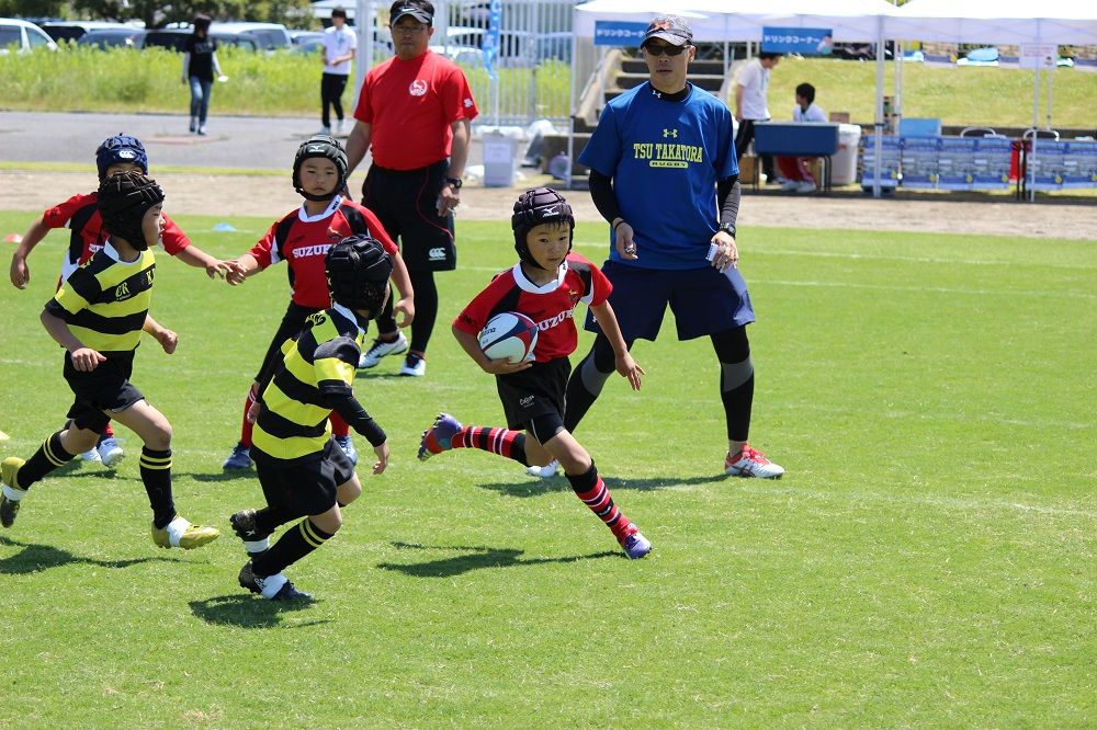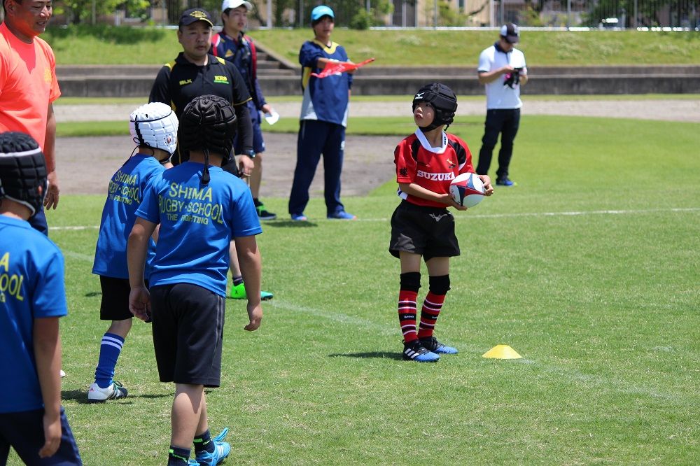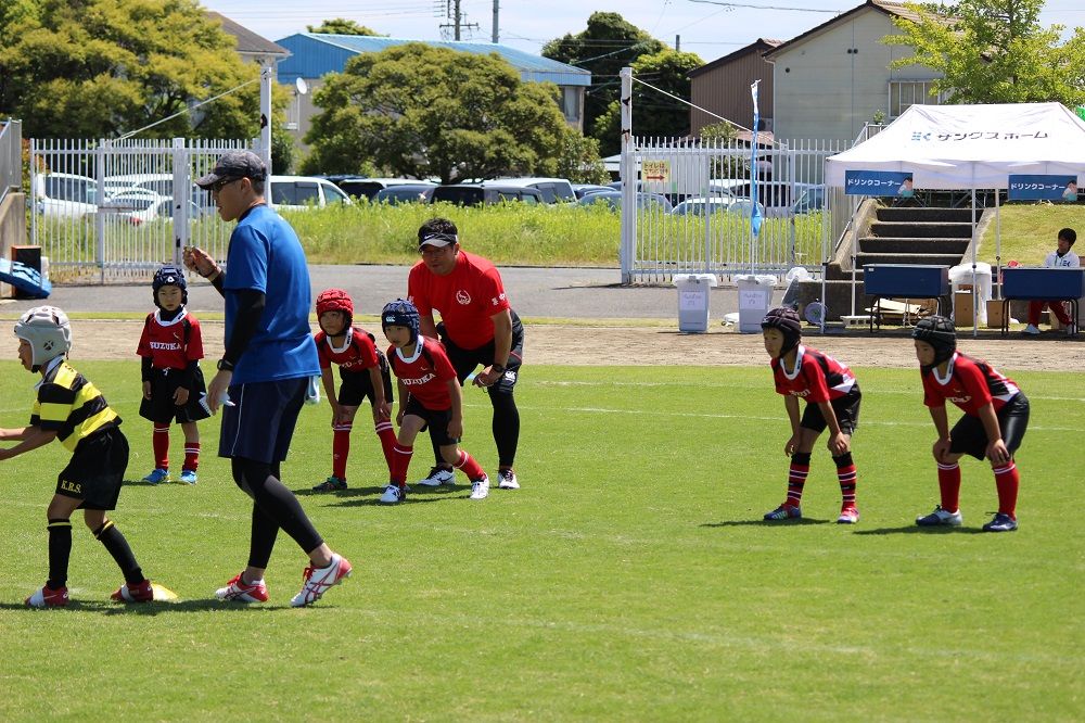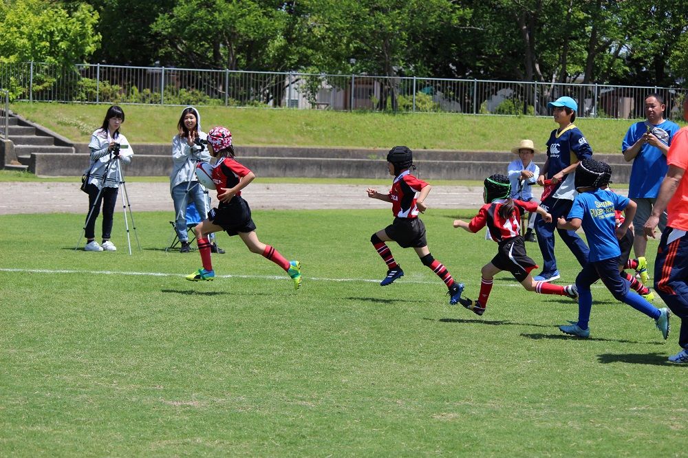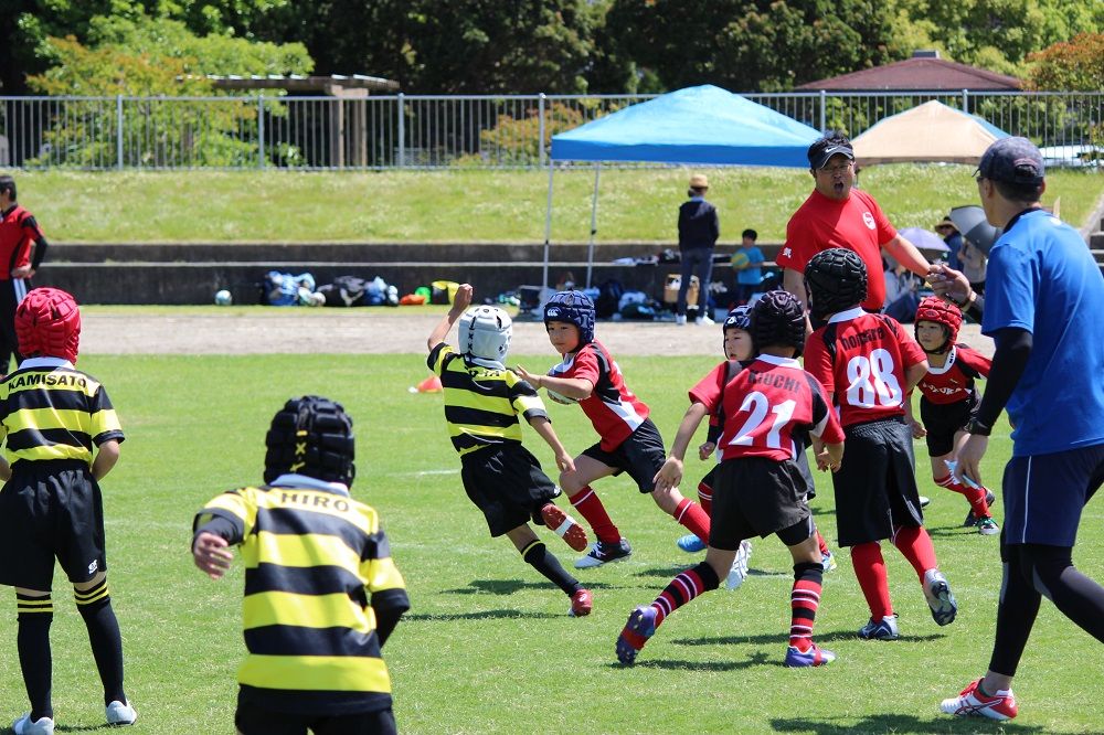 これもラグビーです。試合後のコーチとのハイタッチが印象的。