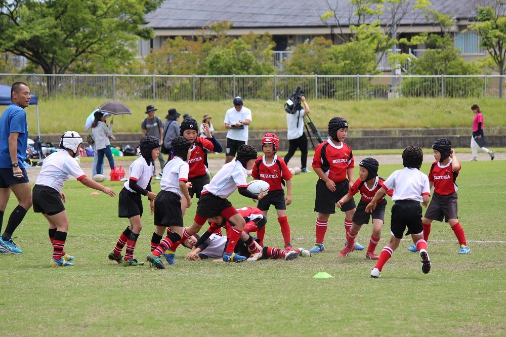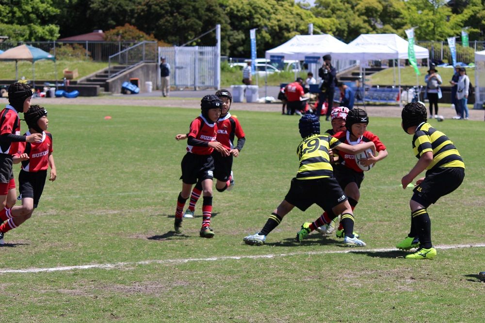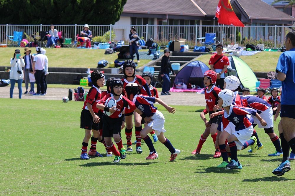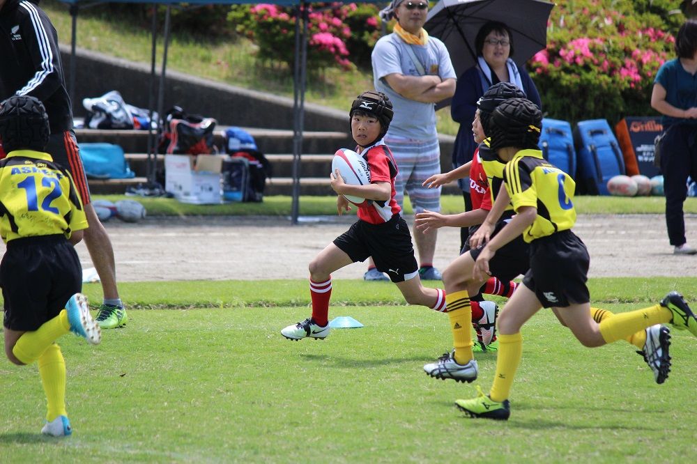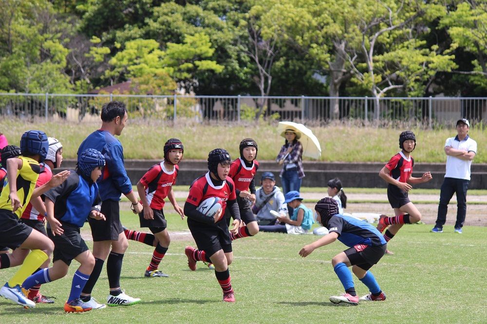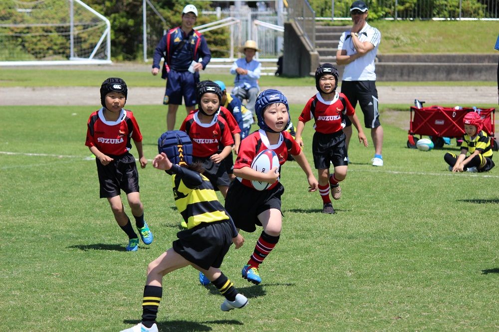 これもラグビーです。試合後のコーチとのハイタッチが印象的。