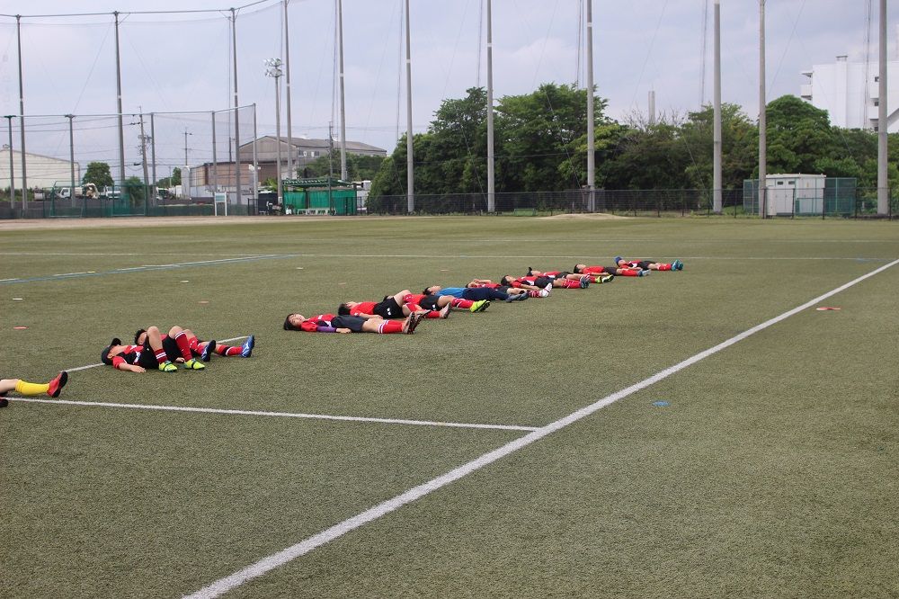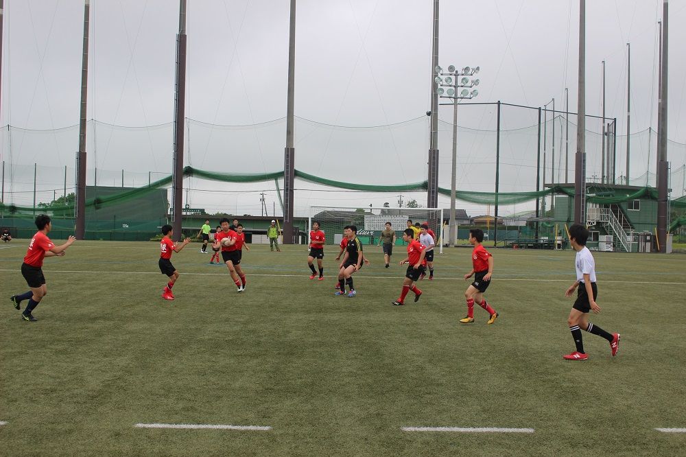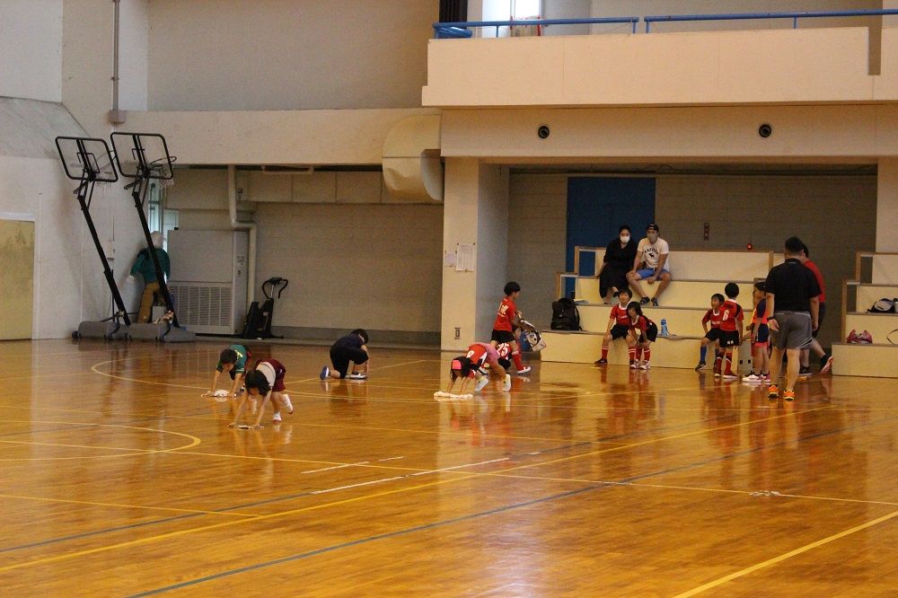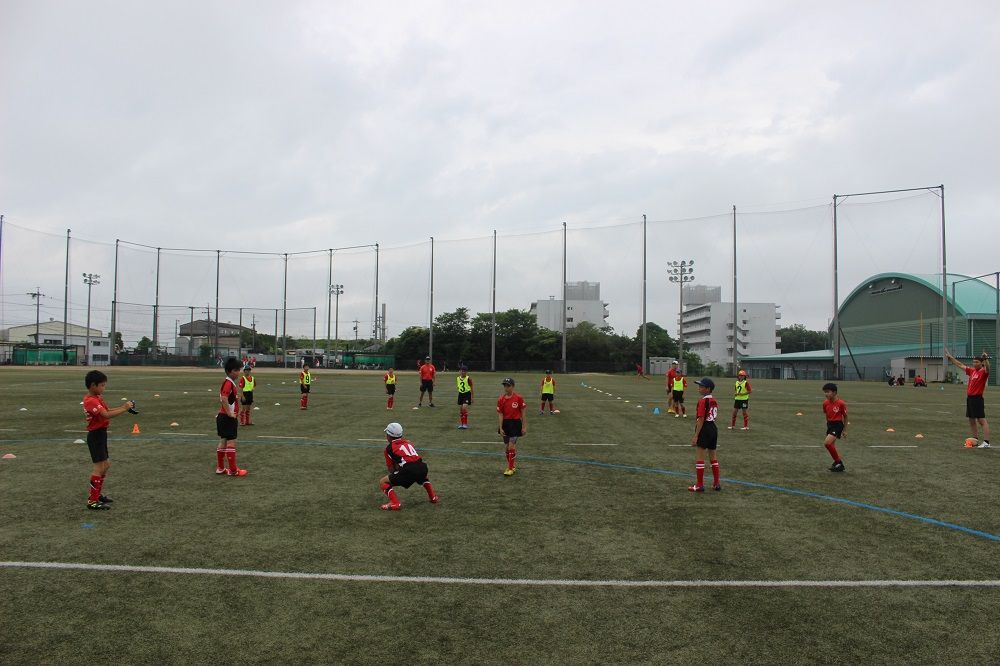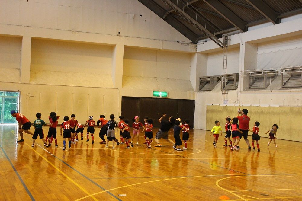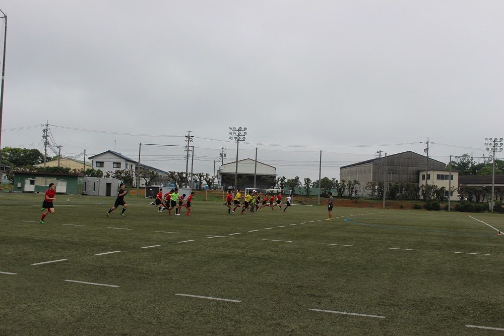 前日からの梅雨空も…体育館と人工芝をお借りできたとあってなんとか練習実施。