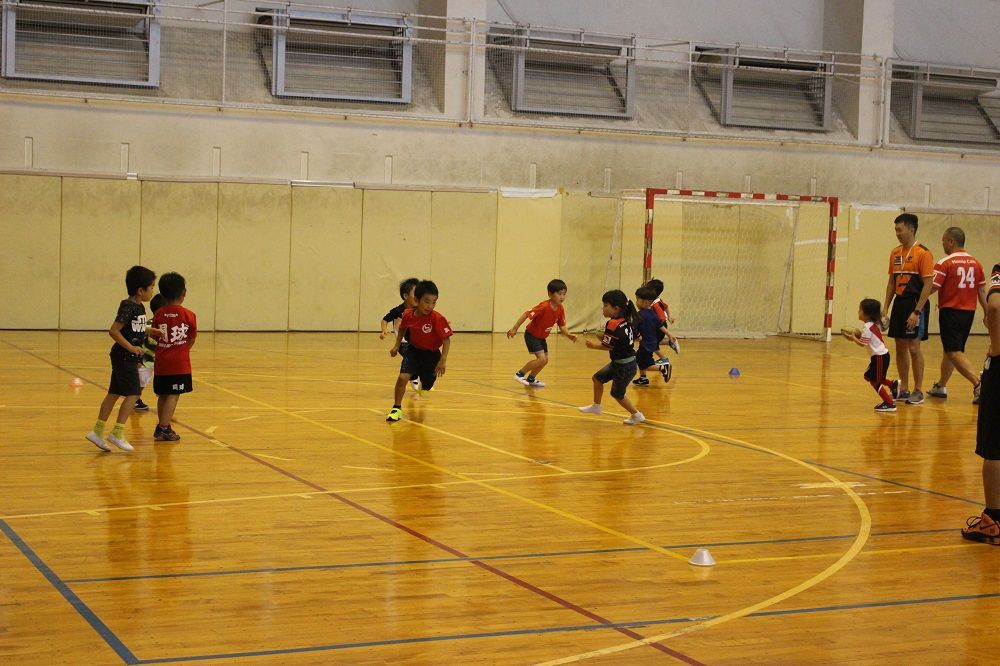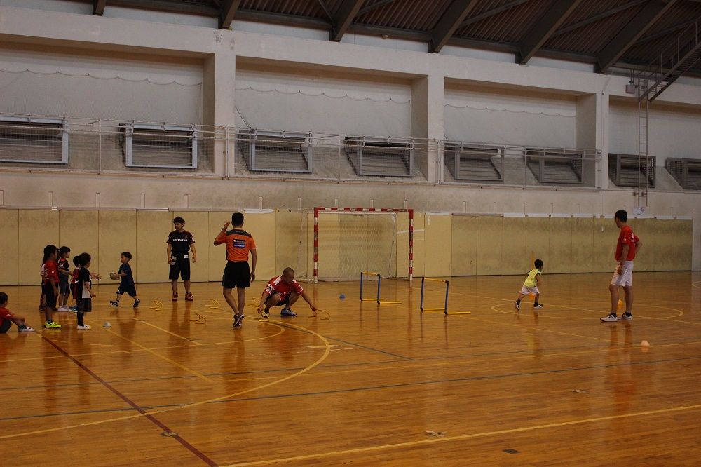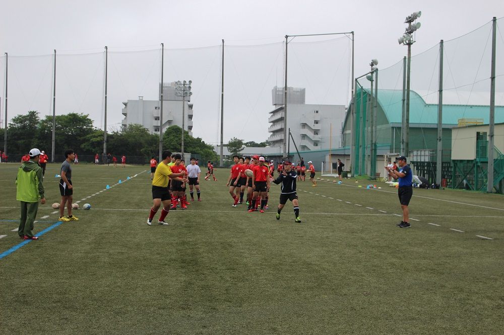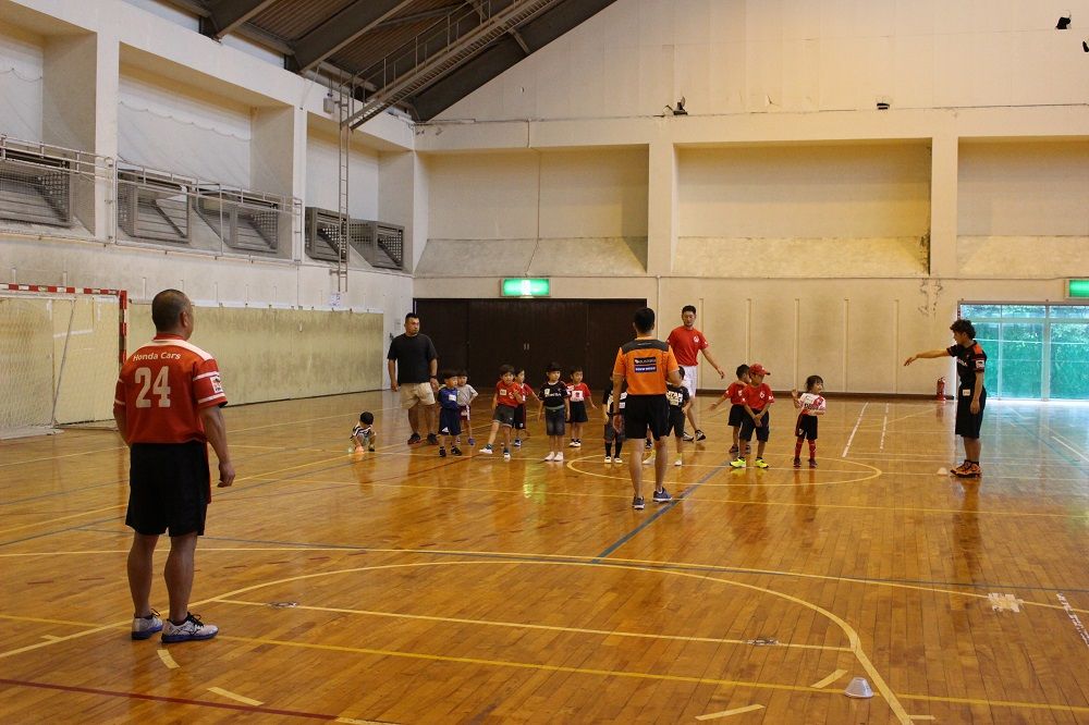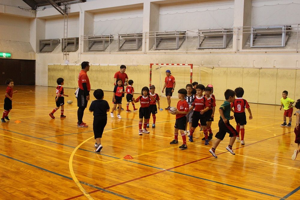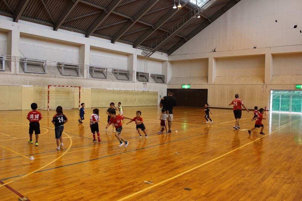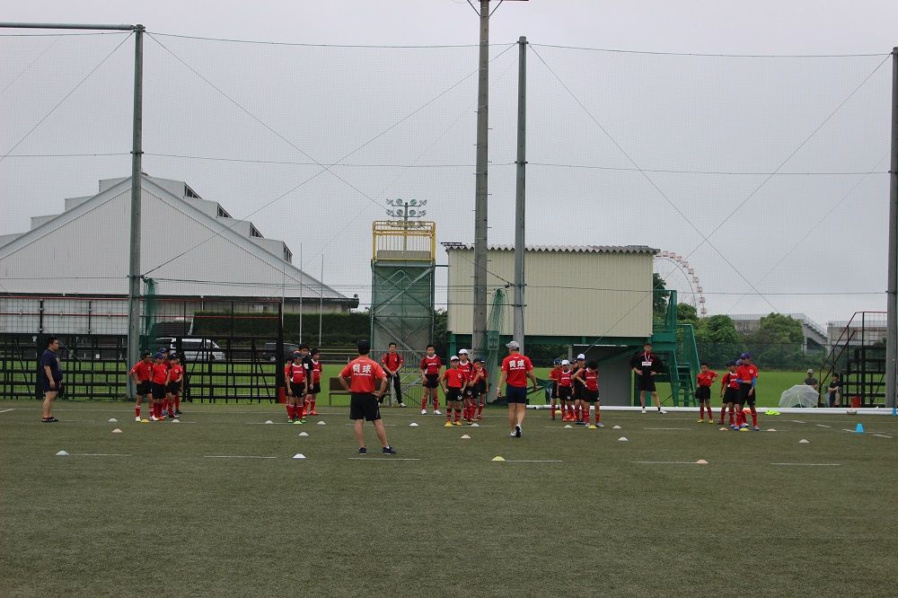 前日からの梅雨空も…体育館と人工芝をお借りできたとあってなんとか練習実施。