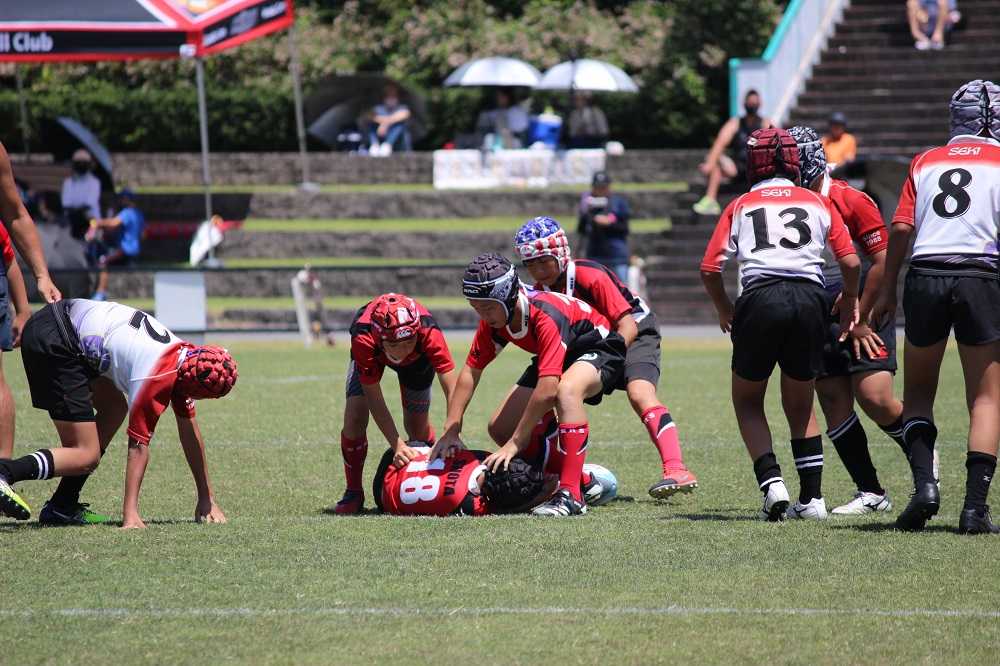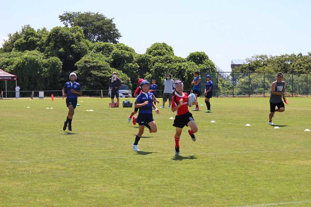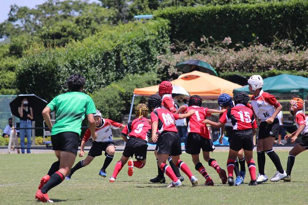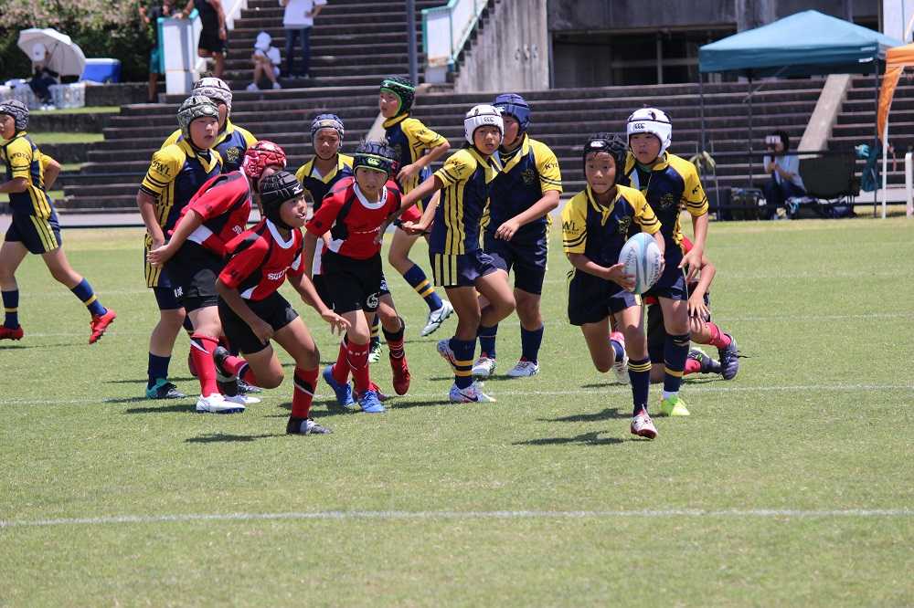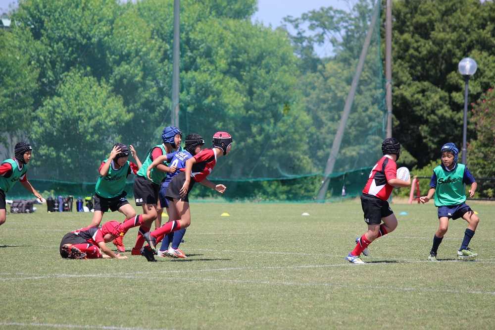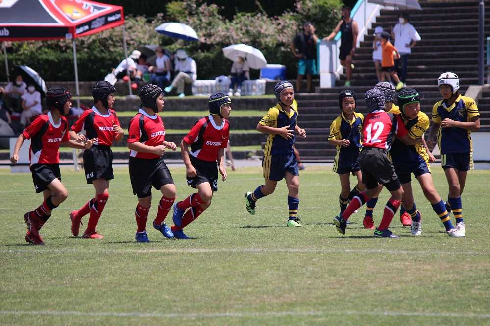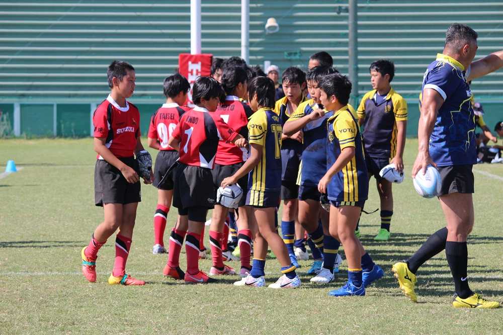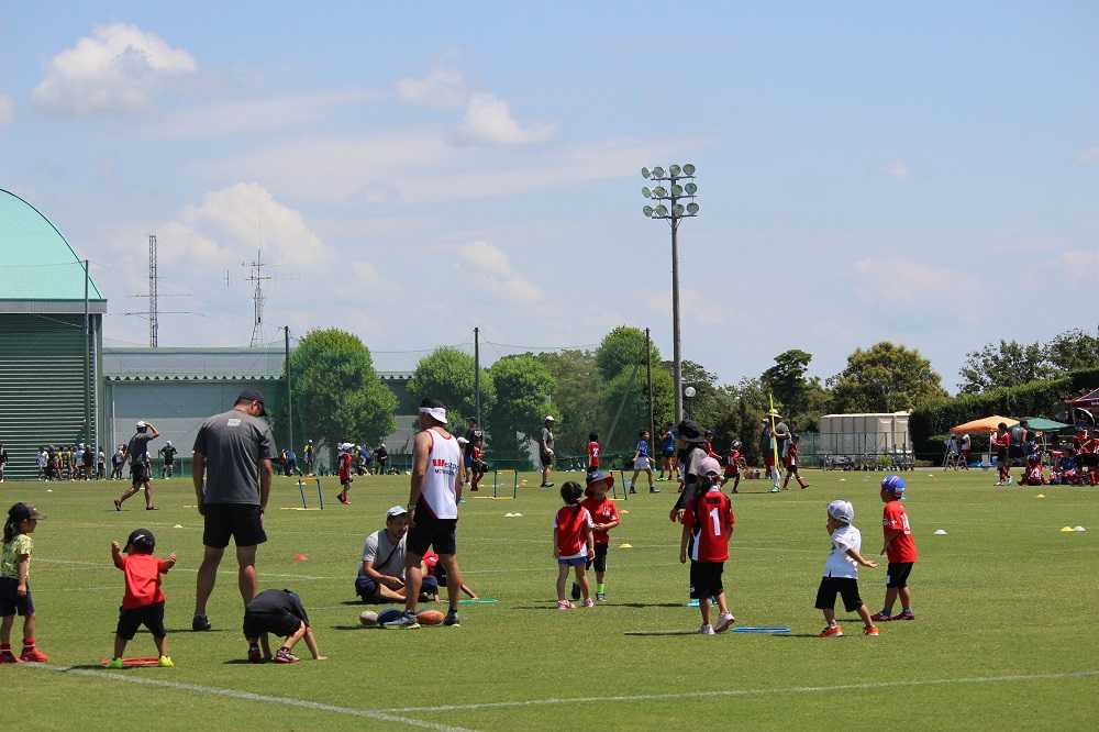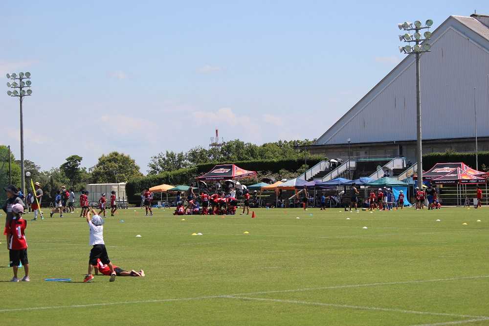 整備された天然芝グラウンドを埋め尽くすラグビーキッズたち。