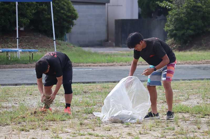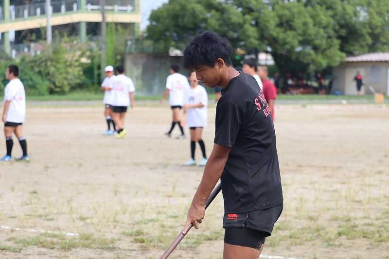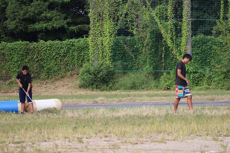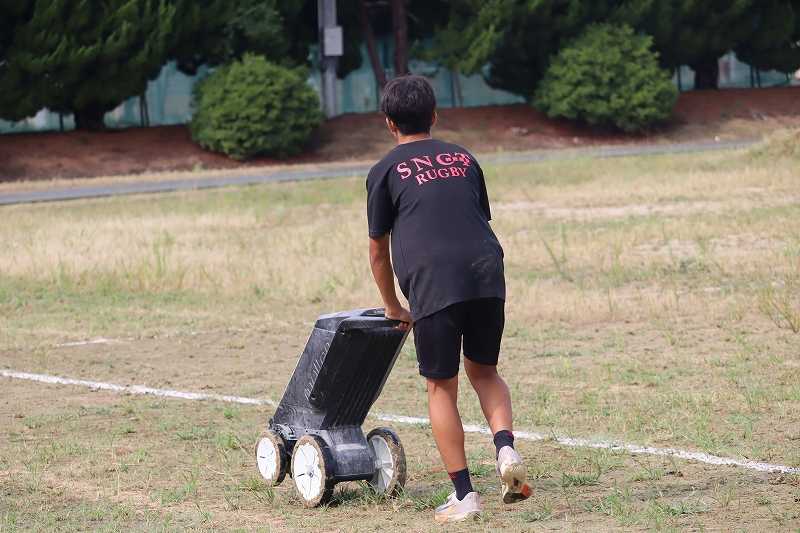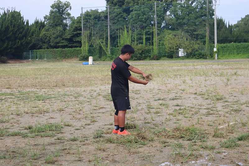 前日の雨によるグラウンドコンディションのメンテナンス。