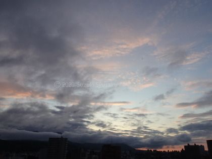 ちょうどいま描いているのが、絵画というより「製図」みたいなお仕事で、ひたすら定規でミリ単位に測りながらの緻密な作業ですっかり肩が痛くなってしまいました。とは言っても、本当に図面みたいに只々正確に描けば良いというものでもなくて、むしろ誇張や省略も含めて、きちんと作品として再構築できるかどうかが要なんだと思います。ちょっと大袈裟なようですが、そのあたりの感覚こそが、この先の時代もアナログ画家が生き残っていけるかどうかの分かれ目かも知れません。夕方、ふと気付いたら雨雲が途切れていました。雲ひとつない快晴も良いのですが、こういう感じの空も絵になりそうです。----おしらせ----【ポストカード】新作4絵柄「クラフトスタジオ」で通販承ります>>詳細はこちら【絵本】福音館書店「かがくのとも」2020年2月号「でんしゃをはこぶ」>>詳細はこちら【札幌の水彩色鉛筆画家】 ~イラストレーター鈴木周作~https://suzuki-syusaku.com