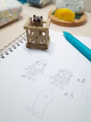 カミサンの机を覗いたら何やら落書きしていました。私には到底マネできない、カミサンの絵と独特の感性はちょっと尊敬しています。----おしらせ----【市電日記2020】Webギャラリー始めました!外出自粛&会期短縮で御覧頂けなかった皆様のために、原画展「市電日記2020」の全展示作品の写真をSNS上で順次掲載して参ります。▼Twitterはこちら▼Facebookはこちら【重要】原画展「市電日記2020」は4月24日(金)17時をもって終了させて頂きました >>詳細はこちら【作品掲載】季刊「スロウ」Vol.62/2020冬号>>詳細はこちら【絵本】福音館書店「かがくのとも」2020年2月号「でんしゃをはこぶ」>>詳細はこちら【札幌の水彩色鉛筆画家】 ~イラストレーター鈴木周作~https://suzuki-syusaku.com