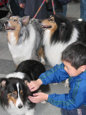 幕張の東京ペットショーへ行って来ました。きんじろーの犬嫌いを治そうと思っていろんなワンちゃん達と「ふれあい」を試みましたが、この写真の通り、どうしても足の間に入って動かなくなってしまいます。人間は好きなのになんで~~・・・・?